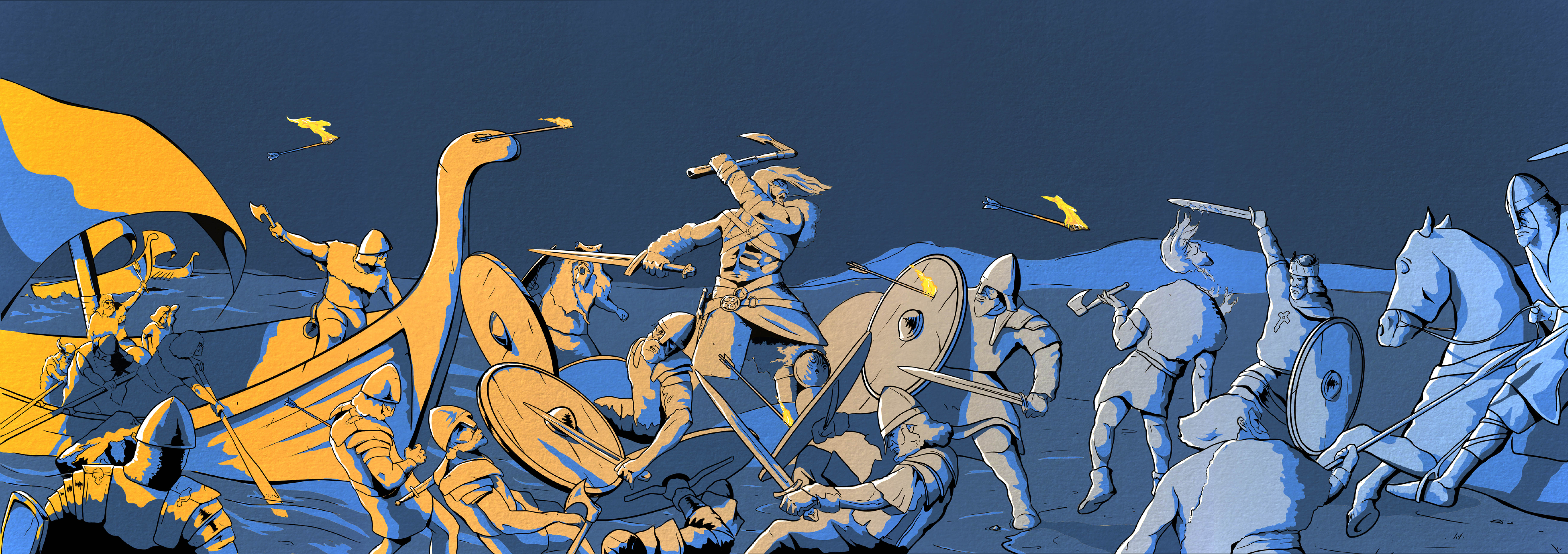 Débarquement des Vikings en 789 ap.JC sur l'Île de Portland (sud de l'Angleterre)